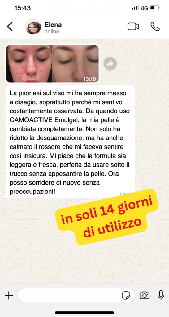 Consiglio con fiducia CAMOACTIVE Emulgel a chiunque cerchi un trattamento efficace per la psoriasi e altre condizioni dermatologiche. È un prodotto naturale, sicuro e clinicamente testato, che garantisce risultati visibili in poco tempo, migliorando significativamente il benessere della pelle senza comprometterne la salute.